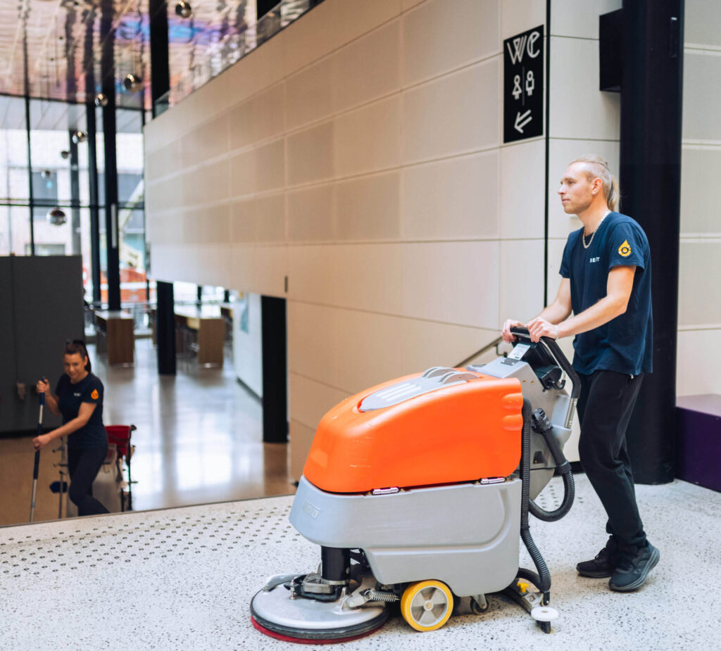 Vi utfører alt fra maskinell vask og polishbehandling til skuring, voksing og oppskuring av harde gulv som vinyl, linoleum, stein og epoxy. Behandlingen tilpasses gulvets materiale, bruk og ønsket glansnivå for et optimalt resultat.